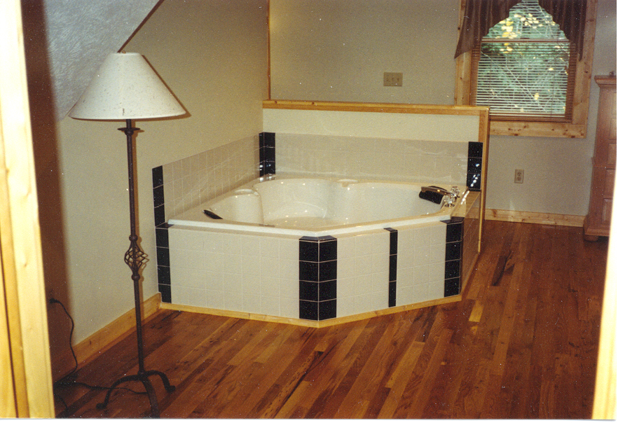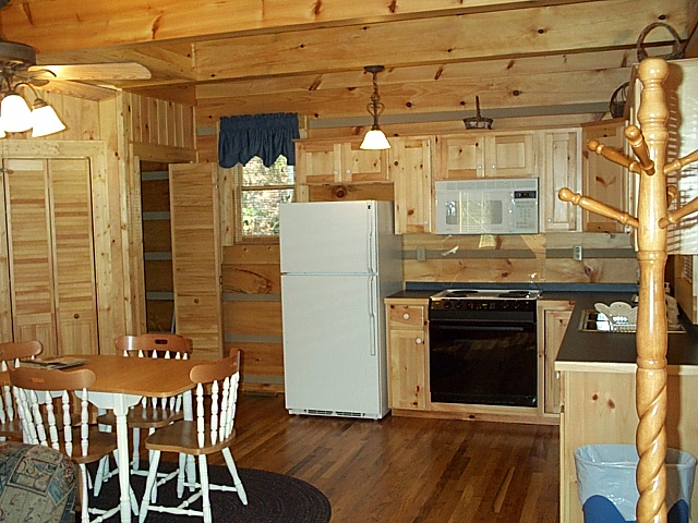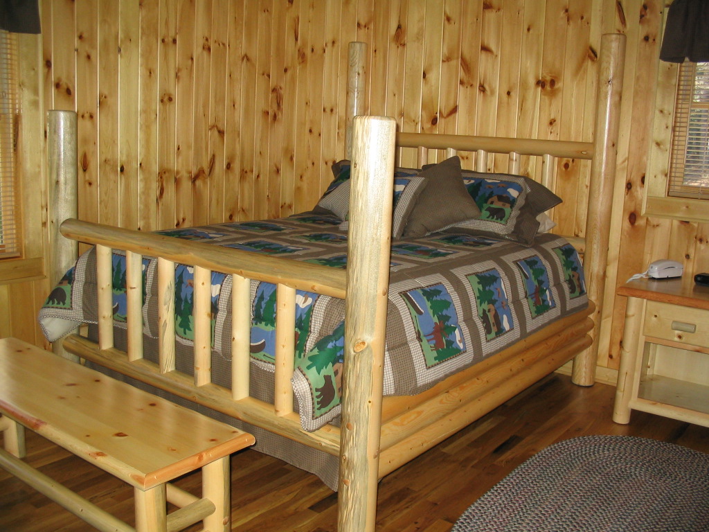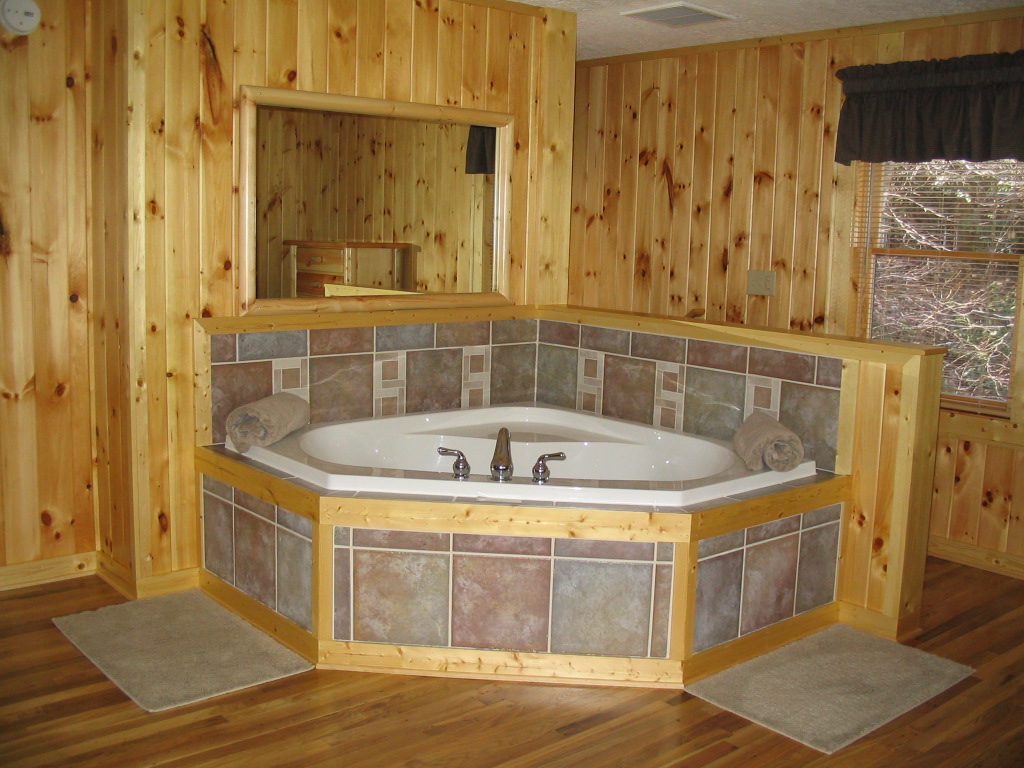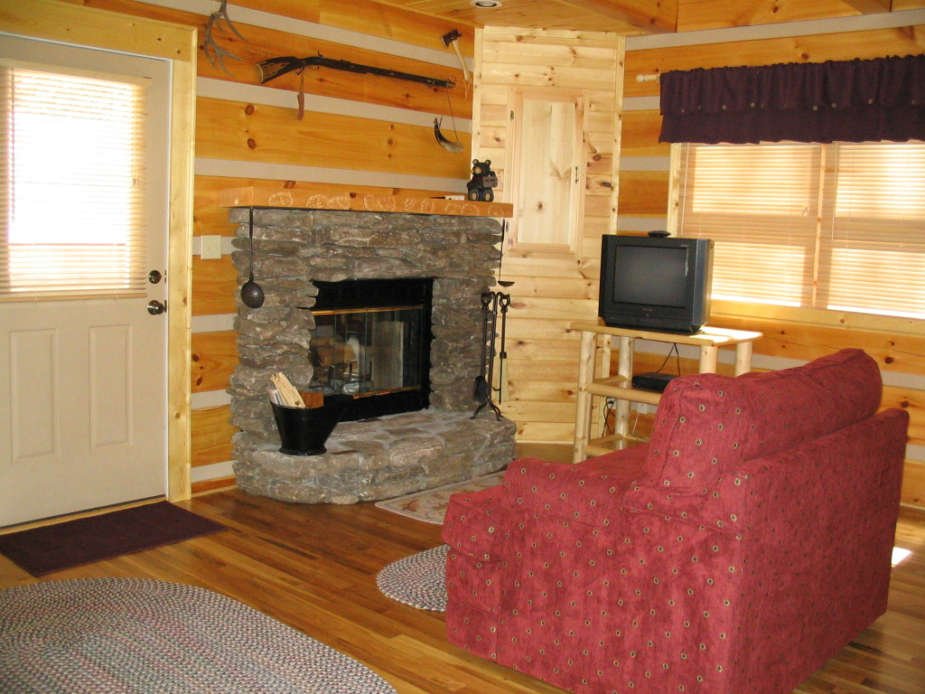 We have two cabins available. Each has 1 bathroom, 1 bedroom with queen size bed and 2 person jacuzzi tub upstairs, sleeper sofa downstairs. Cabins are fully furnished, have central air and heat, fireplace, satellite tv, washer and dryer, and gas grill. Romantic, inviting, and very clean.